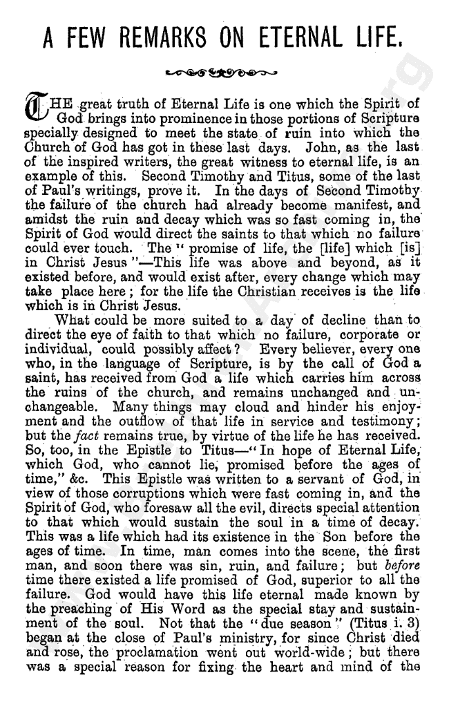 A Few Remarks on Eternal Life