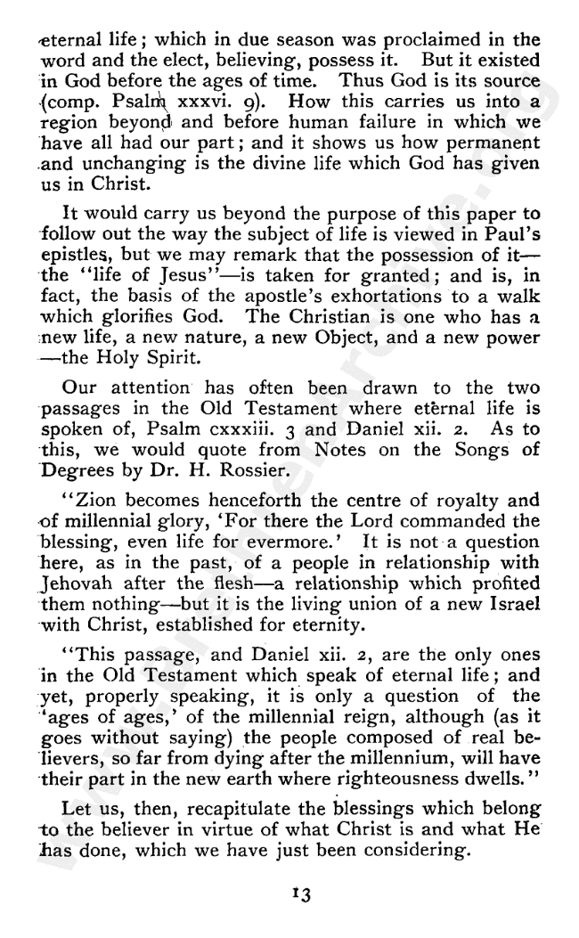 Brief Remarks on Eternal Life in Its Various Aspects