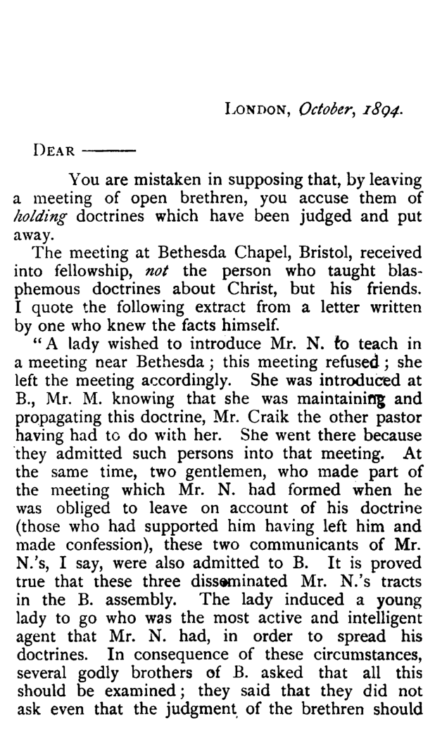 by J.N. Darby 1872 Scarce published letter giving very valuable points on assembly discipline 4 Pages