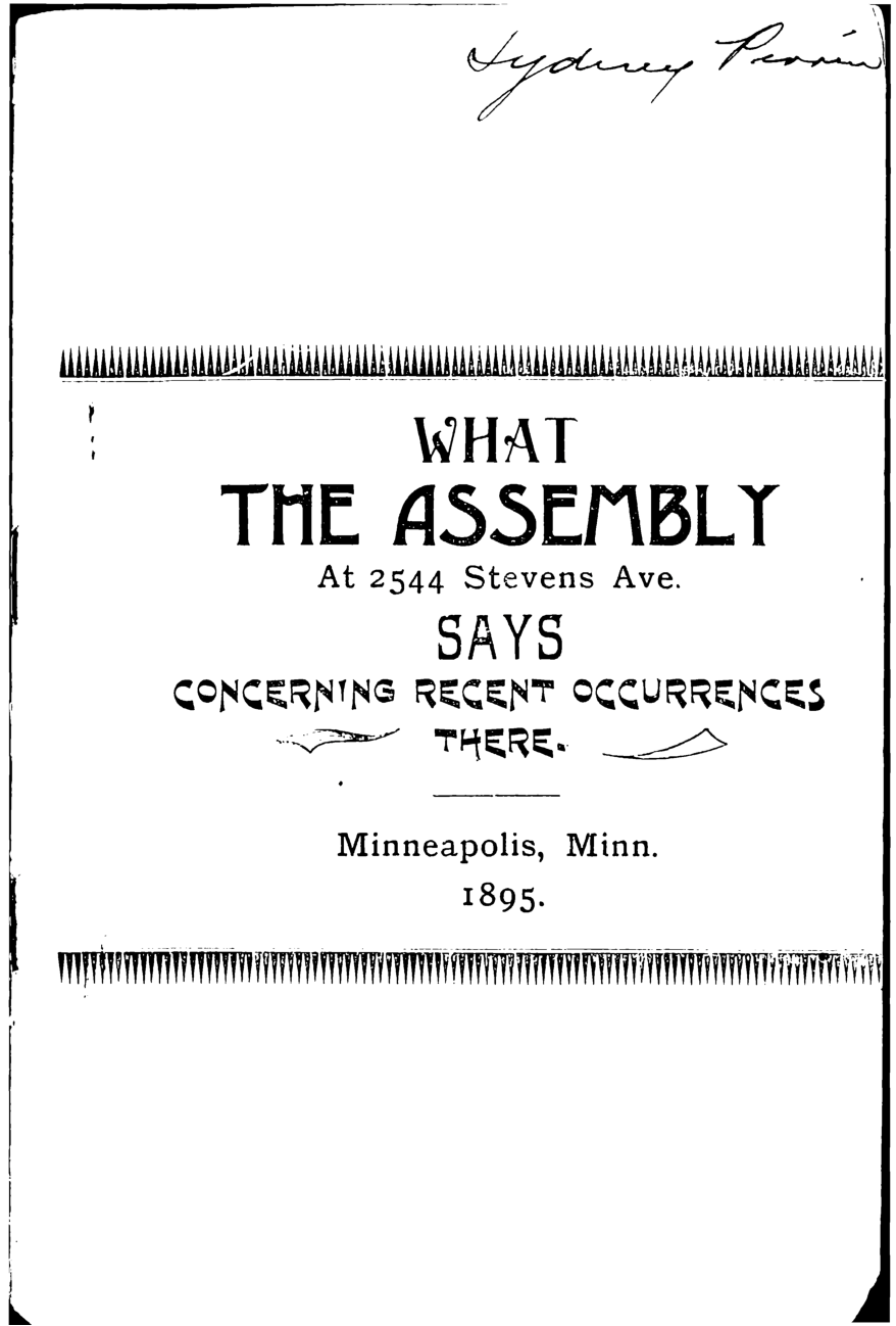 What the Assembly at 2544 Stevens Ave. Says Concerning Recent Occurences There