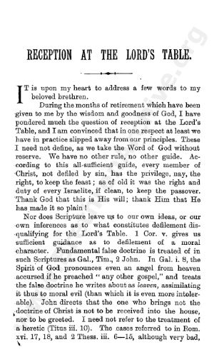 Reception at the Lord's Table