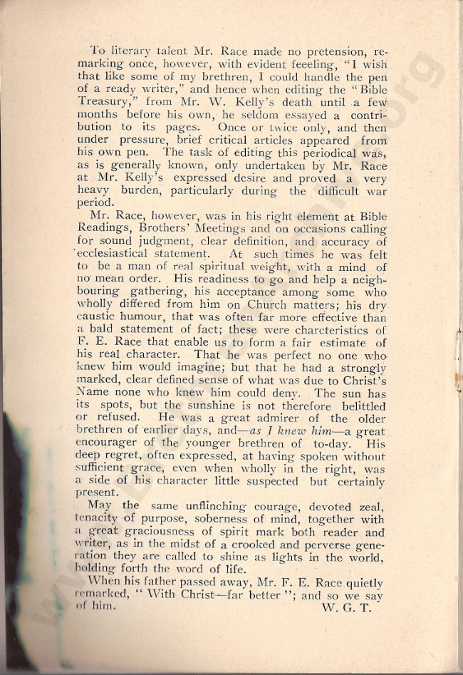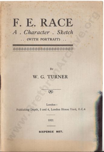 I am researching some of the deceased buried in Brockley & Ladywell cemeteries ( SE London) One of those recorded as buried here is a Frederick Elijah Race ( d.1921) Would it be possible to have access to the document' Character Sketch' of FER by W G Turner on your website to assist in this research ?