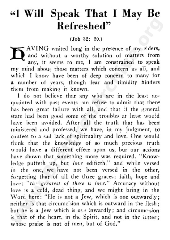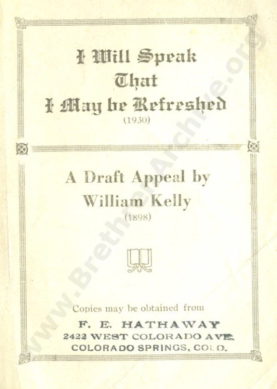 I Will Speak that I May Be Refreshed