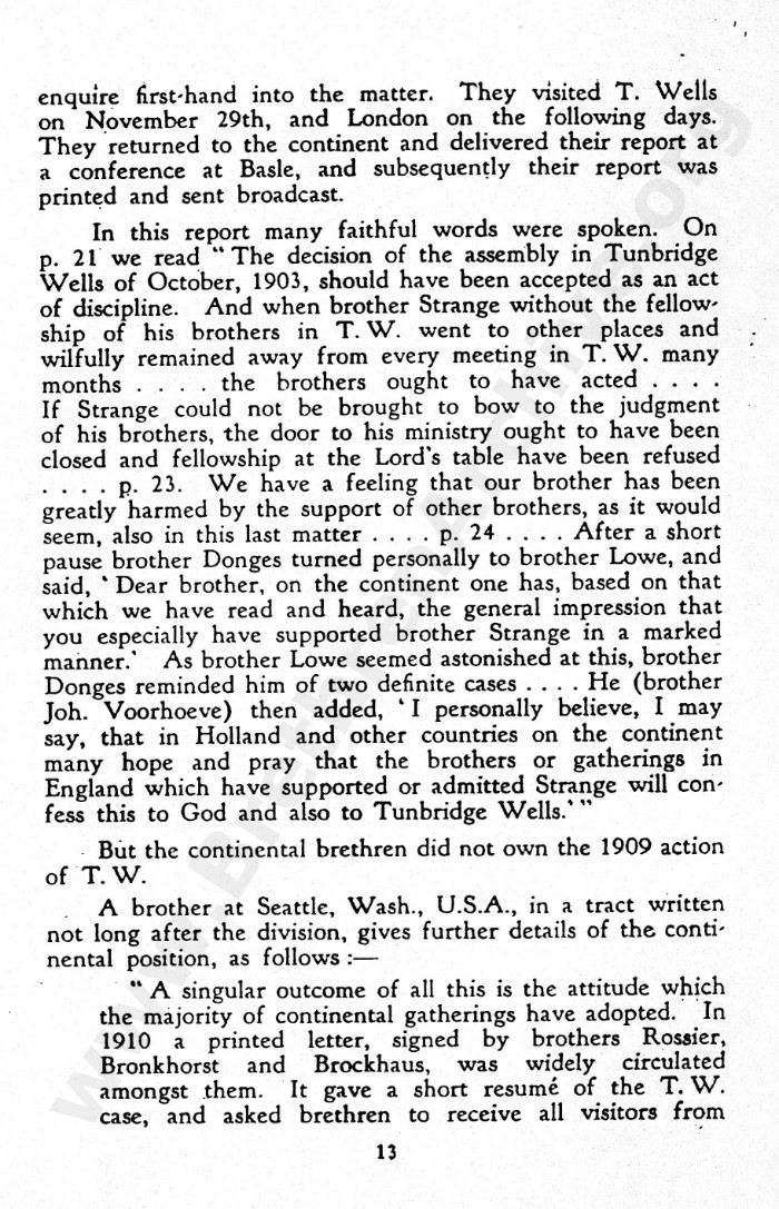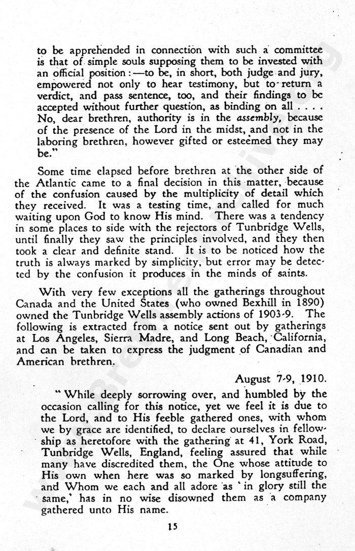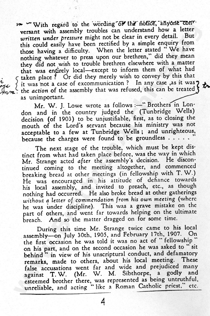 Anyone doing their research properly will seek out primary sources rather than rely on later secondary sources which usually contain opinions and not just the facts. As can be seen several times in this letter, the judgement arrived at with regard to Mr Strange was made at 41 York Road, Tunbrdge Wells, yet interestingly, the gathering would no longer be recognised as a "Tunbridge Wells" meeting.
