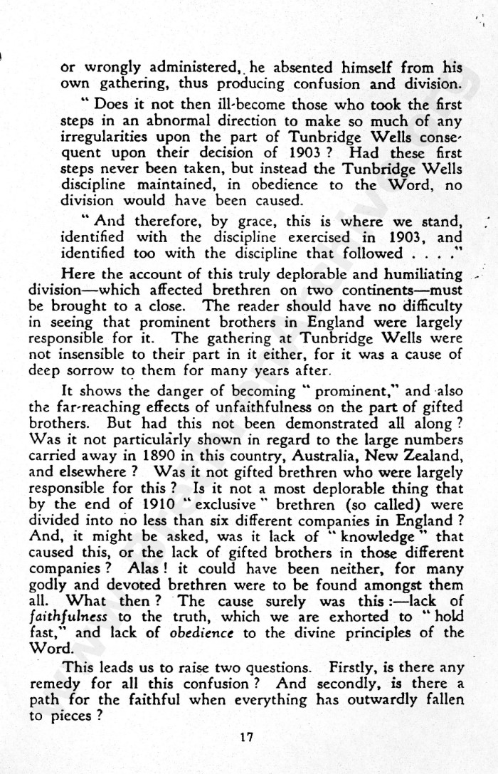 When Napoleon Noel wrote his "History of the Brethren" in the 1930s there had been even then among the "TWs" six or seven divisions. So which of these "TW" groups is the one which has all along always made the right decisions?