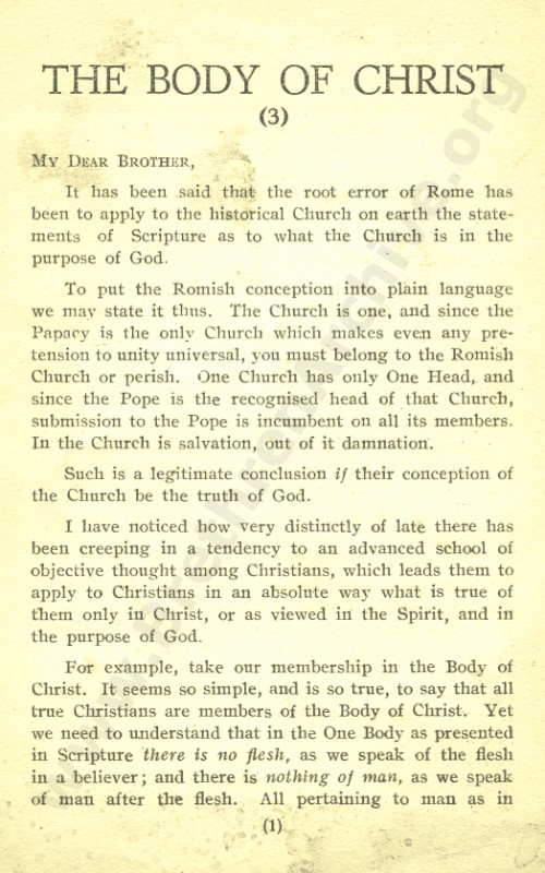 Three Letters on The Body of Christ