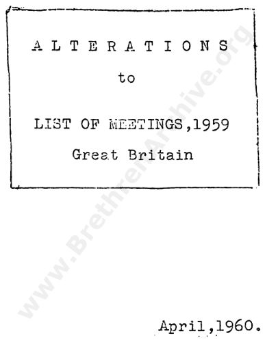 Alterations to List of Meetings 1959 - April 1960