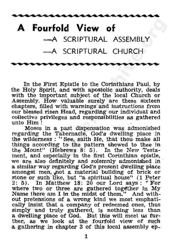 A Fourfold View of, A Scriptural Assembly, A Scriptural Church