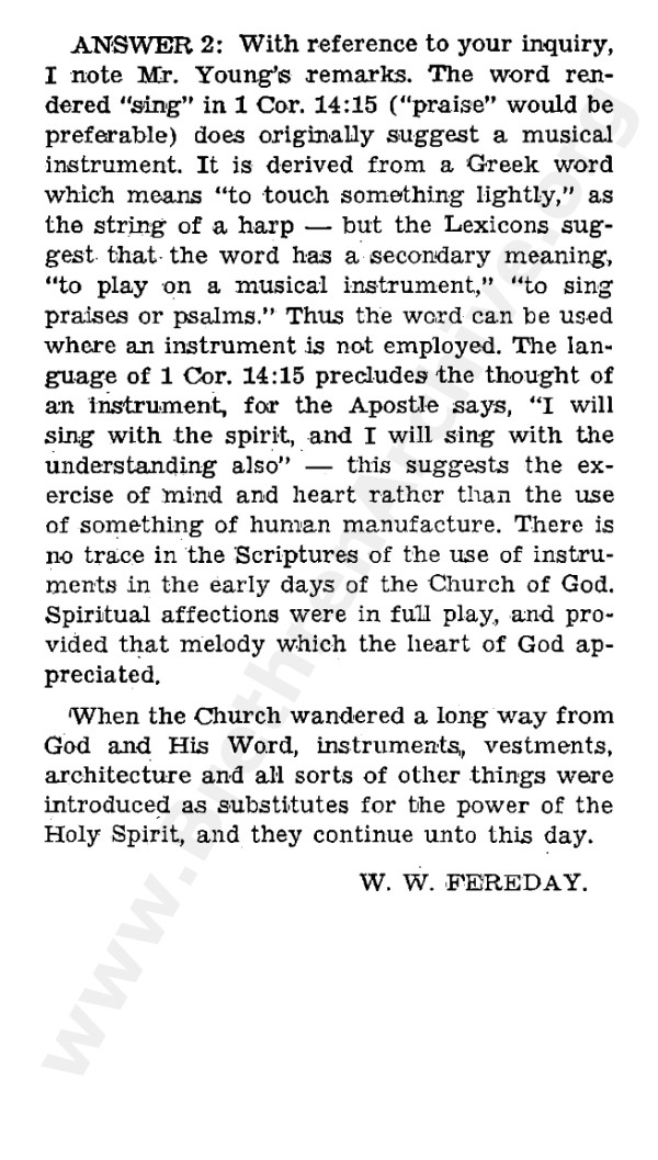 Four Answers to a Question on the Use of Instrumental Music