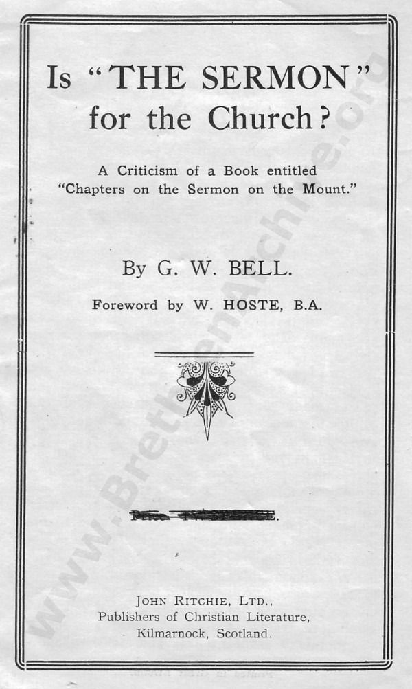 'A Criticism of a Book Entitled "Chapters on the Sermon on the Mount" by C.F. Hogg'