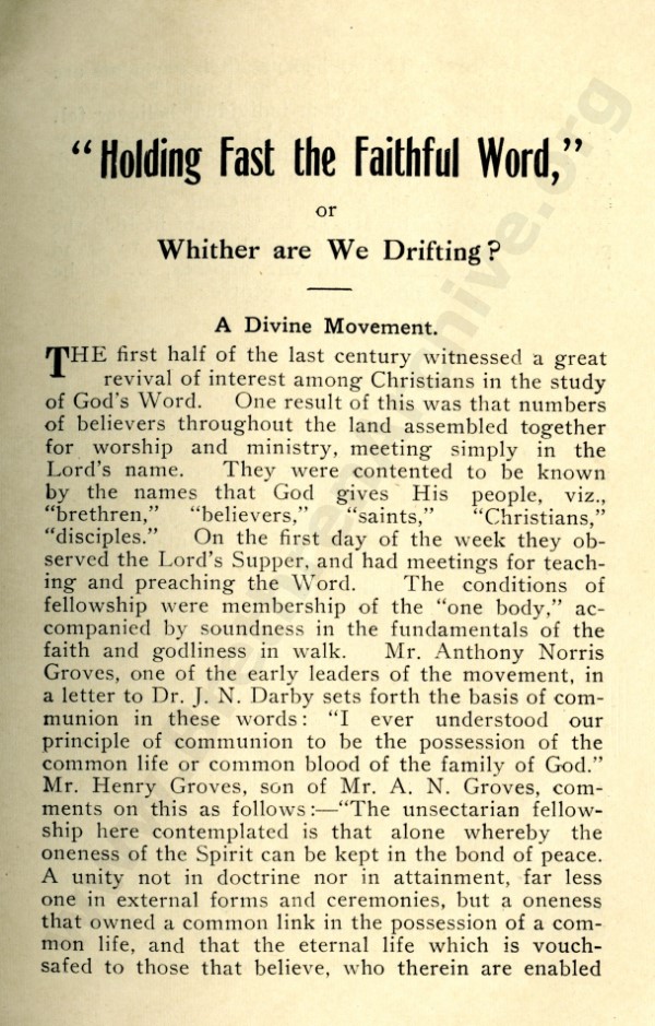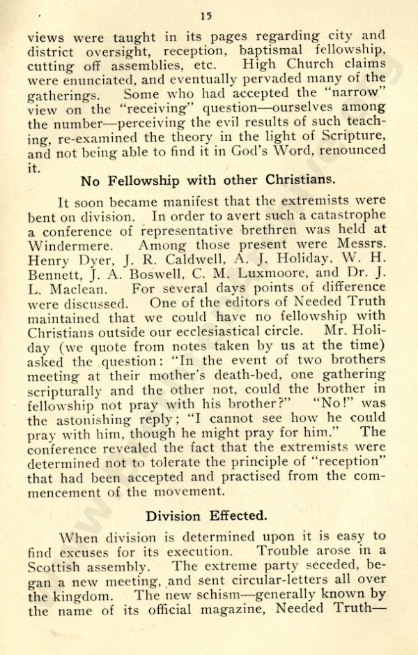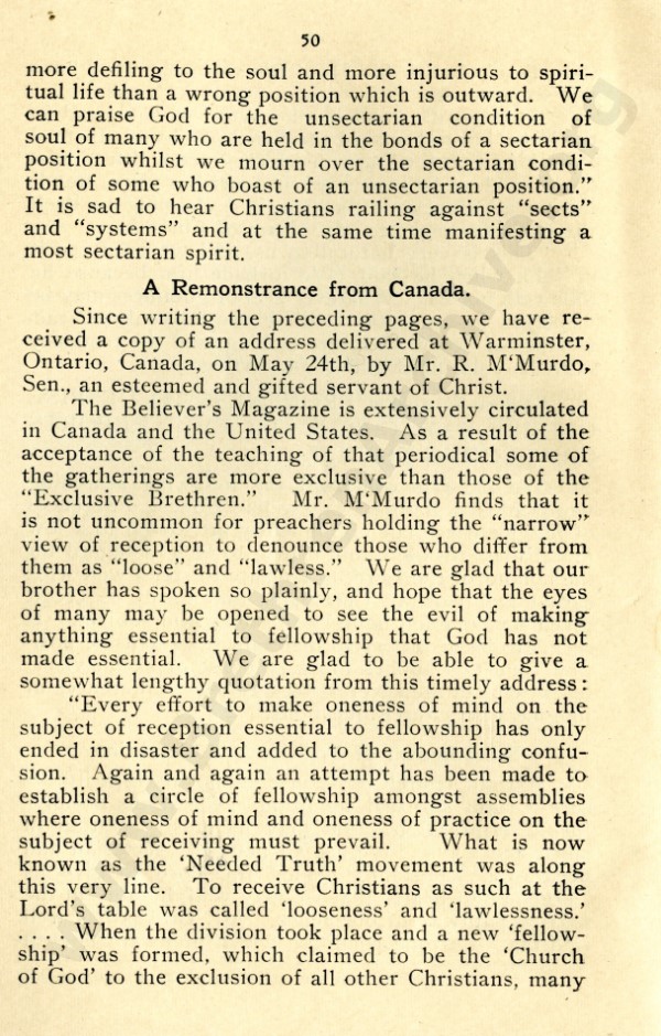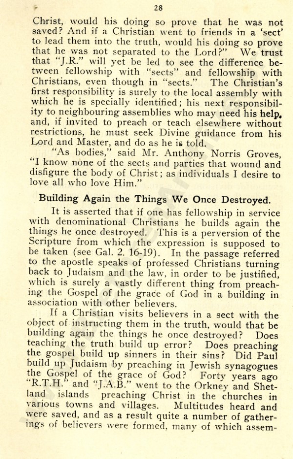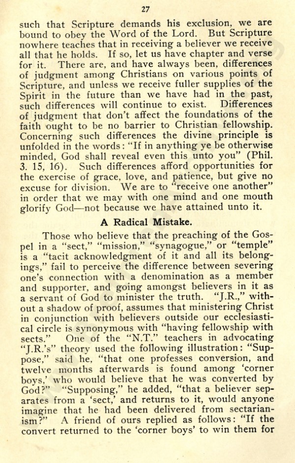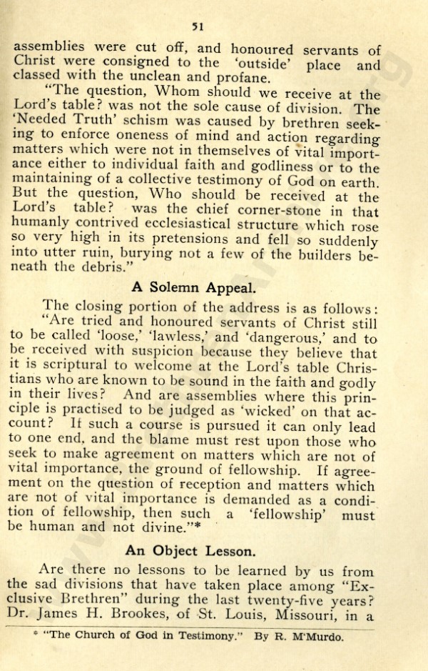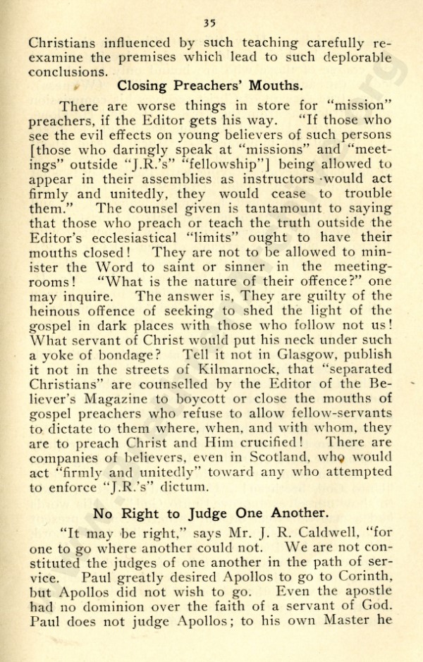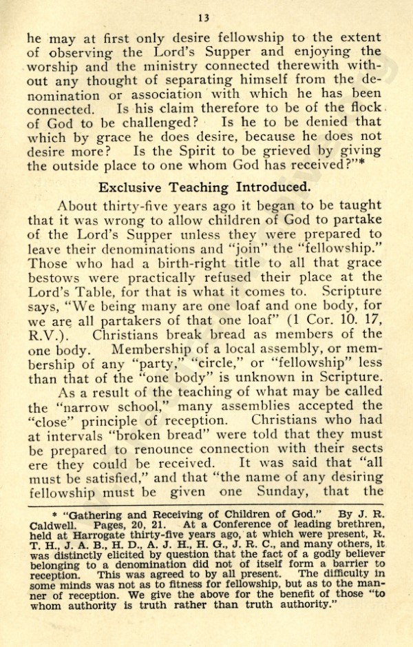 Mr Marshall, and also J R Caldwell as can be seen in the preface, were concerned about an ecclesiastical notion that has by now spread throughout the "open" meetings, and was my reason for writing "Two Churches: the Question of the Church and Churches?"
