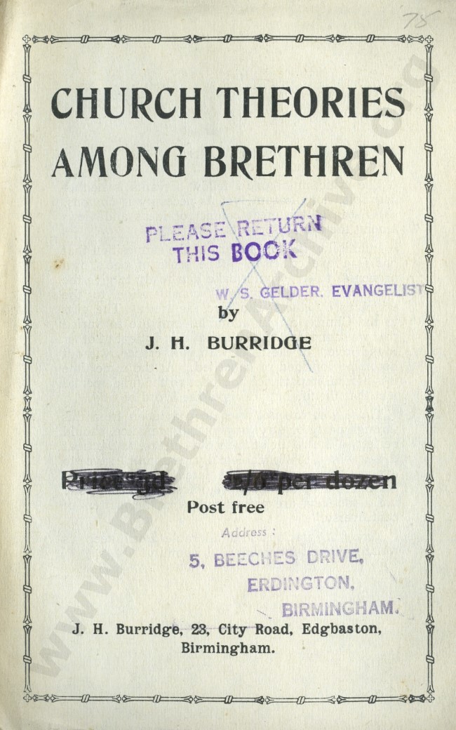 This book is one among several others which J H Burridge wrote in response to the influx of “Needed Truth” teachings then gaining rapid support among the Open Brethren, this being the so-called “tightening process” as sometimes called.
