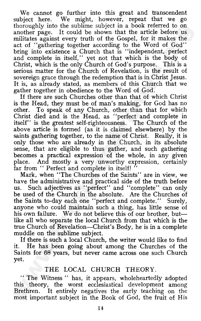 W R Lewis then joined with W E Vine and wrote “Wrong Ideas On the Church” by way of a response to WWF in March 1949, Mr Fereday responding to it in May of that year with an article bearing the same title.