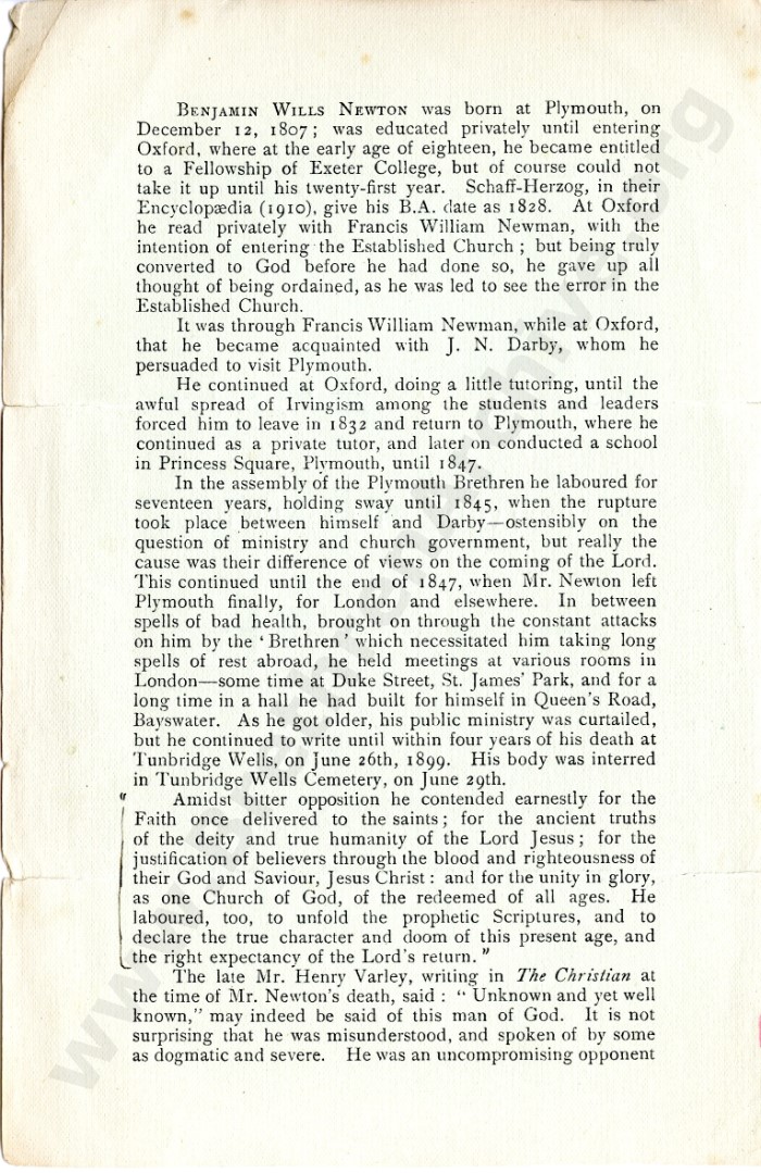Benjamin Willis Newton - Memorial