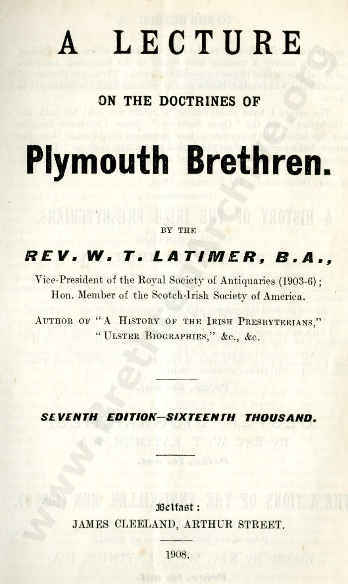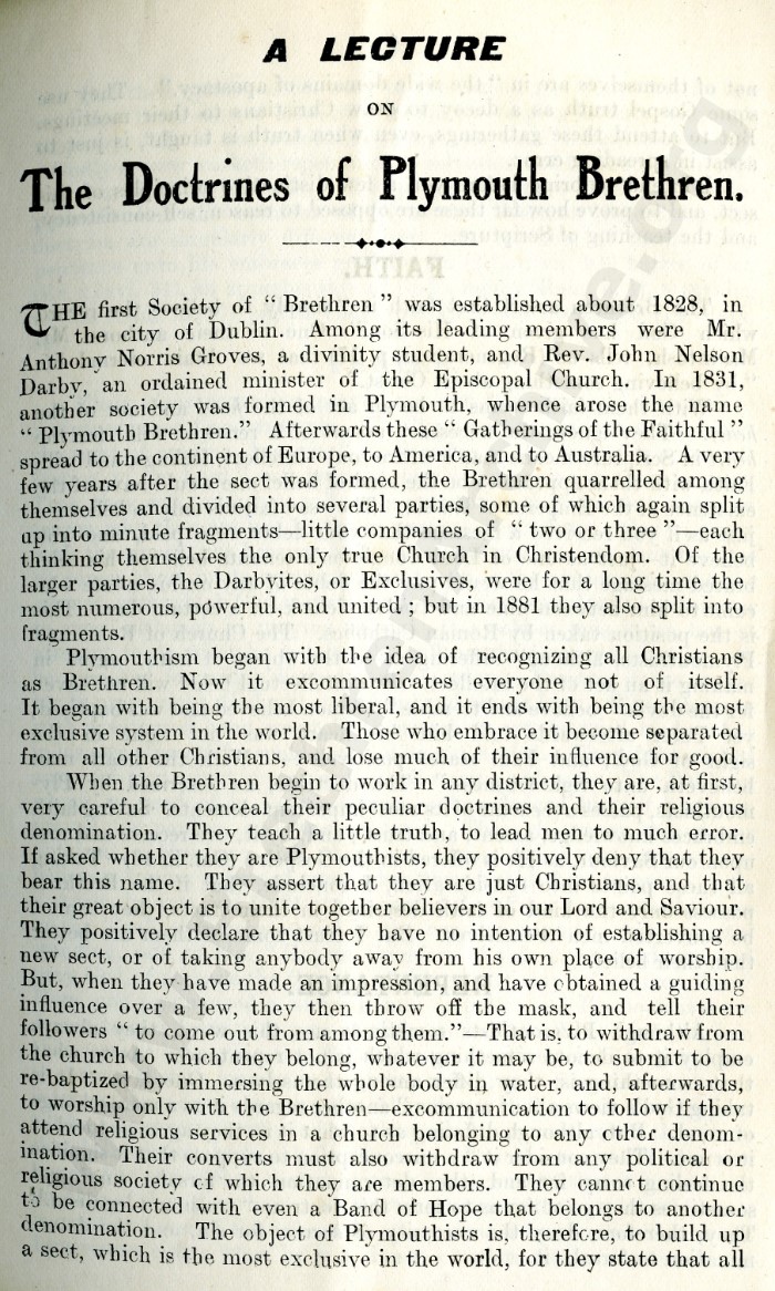 A Lecture on the Doctrines of the Plymouth Brethren