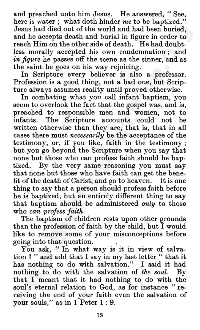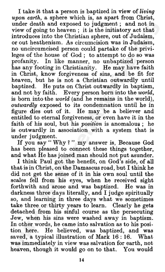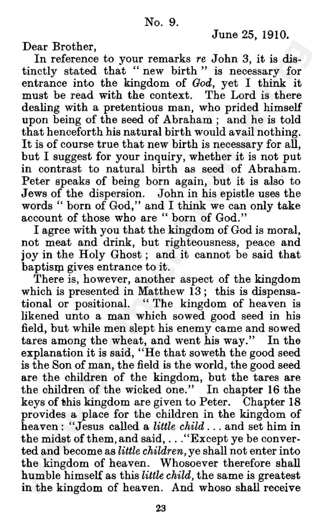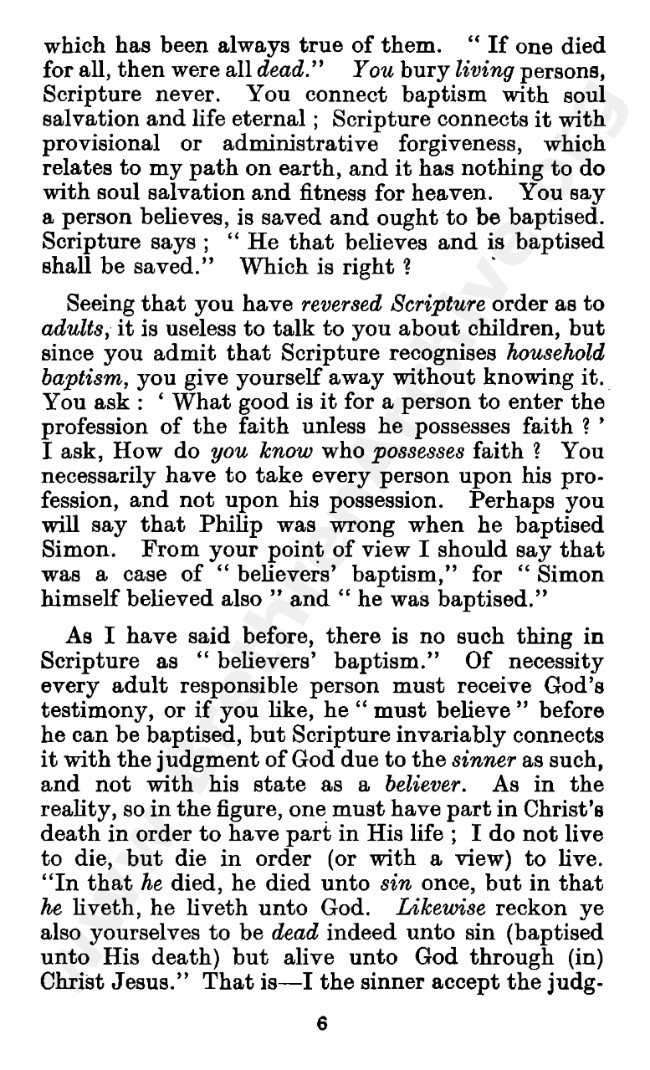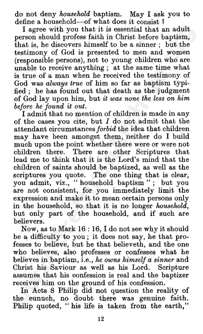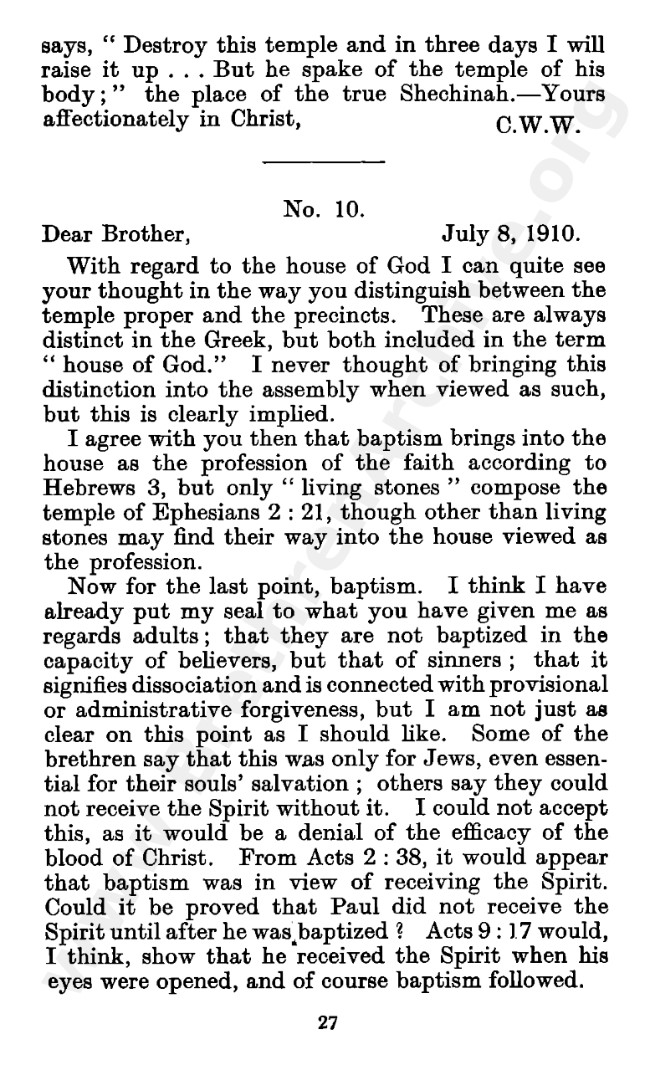 Well known pamphlet justifying 'Infant Baptism' (though they prefer to refer to it as 'Household Baptism'). Framed as a series of letters between an Exclusive, and an Open Brother (J. Collie Smith), with the OB being convinced in the end. See also http://www.christian-baptism.com/wycherley-response.htm