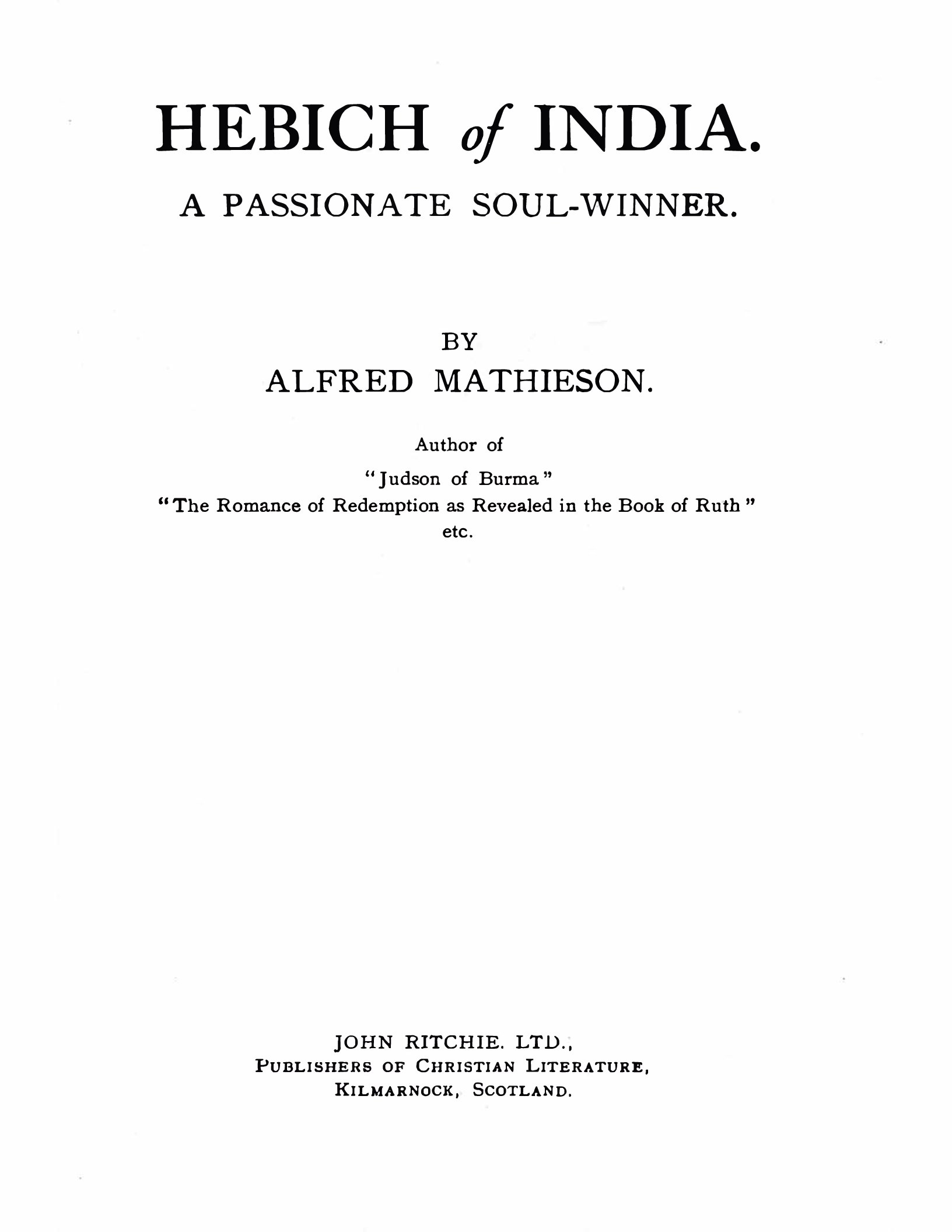 Hebich of India. A Passionate Soul-Winner