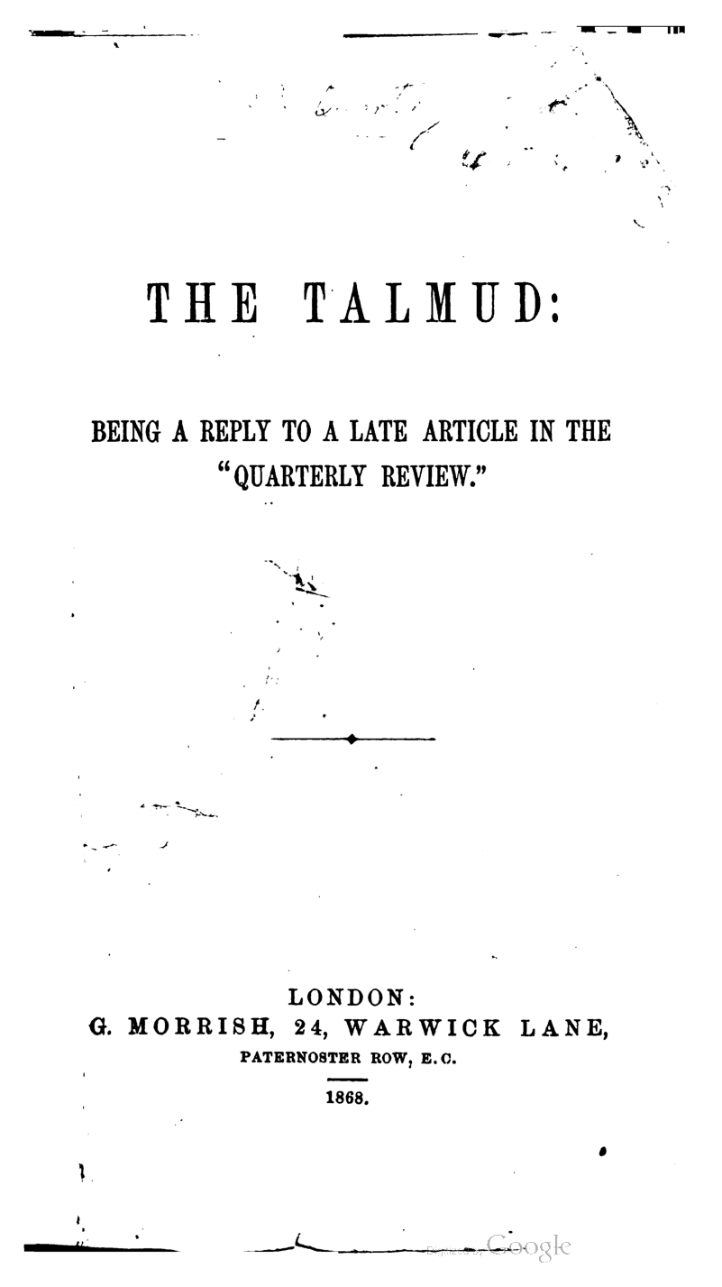 The Talmud: Being a Reply to a Late Article [by E. O. M. Deutsch] in the “Quarterly Review.”