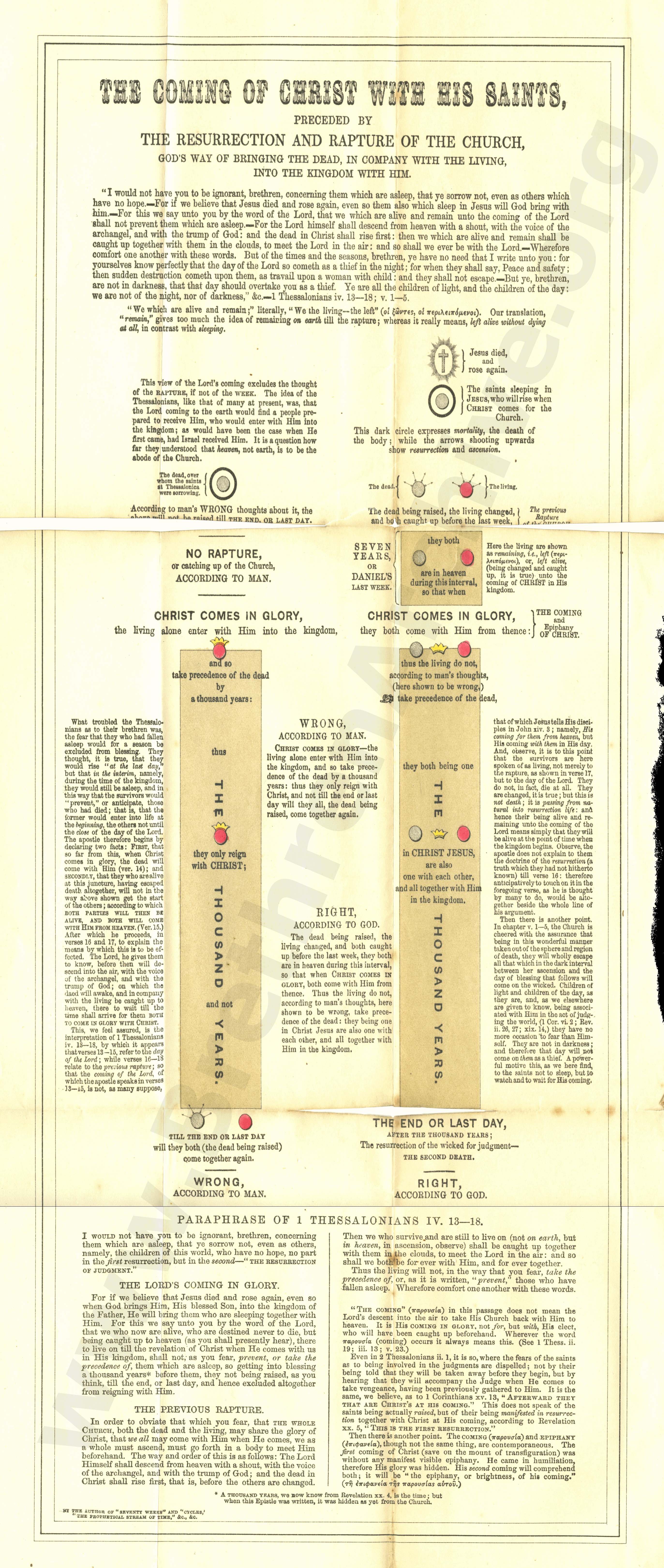 Hallo David. I suggest that you read Sir Edward Denny's booklet that this chart accompanies. In the booklet you will find an explanation of the parts of the chart which may answer some of your questions. Read it carefully and go to all the Bible passages. If you still have some questions, I'm sure that someone will be able to help you. The booklet is on this site here - https://www.brethrenarchive.org/people/sir-edward-denny/pamphlets/the-coming-of-christ-with-his-saints-etc-also-gods-order-of-time-in-connection-with-the-building-of-the-temple-etc/