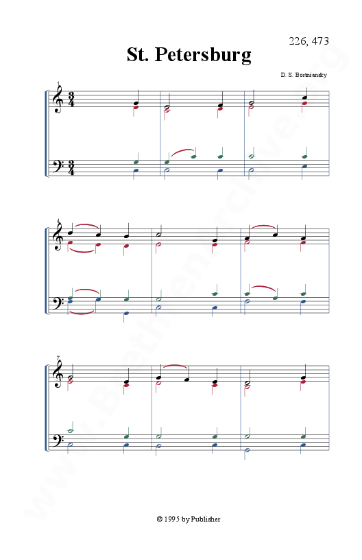 In the UK there are three adaptions or arrangements of it extant, 1) PENIEL (7.7.7.D.) #150 in Melodies and Chants, 2) WELLS (7.7.7.7.8.8.) #265 Little Flock Tune Book (1954) [#280 in the green 1979 edition], and 3) ST PETERSBURG (8.8.8.D.). Unfortunately, none of these really does the original justice and, in my view, ST PETERSBURG is the least effective as the ending is a complete let-down and sounds as if it is being played on an old wind-up record player which has run out of steam (OK, that's a mixed metaphor but you know what I mean)