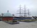 The Cutty Sark, with the Greenwich Foot Tunnel on the left hand side.
