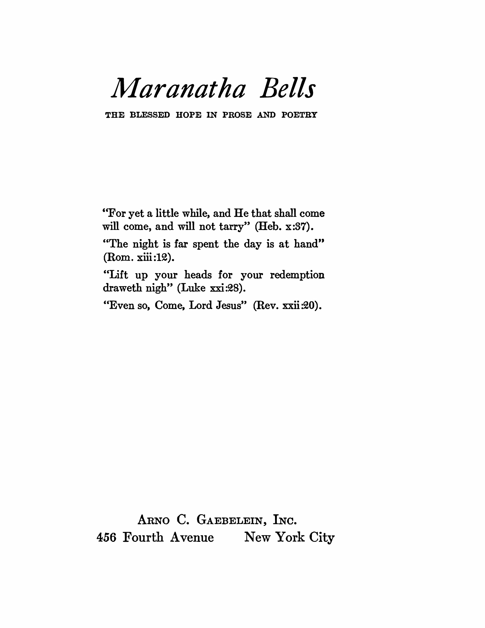 Maranatha Bells: The Blessed Hope in Prose and Poetry