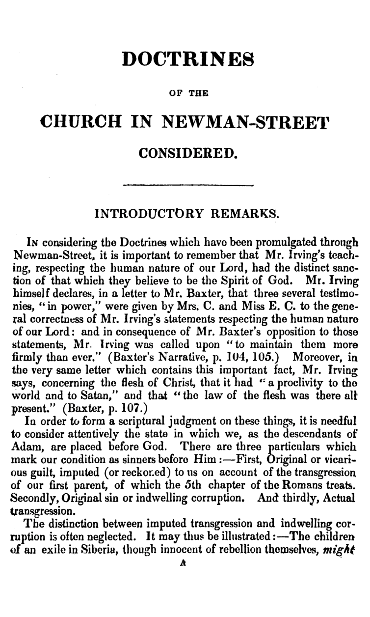 The first appearance of this famous pamphlet by BWN was in "The Christian Witness" 1835, page 111. When the second edition of "The Christian Witness" appeared, there was some alteration of the content of the article, without notification that this had been done. The doctrinal differences in the two editions became important in the subsequent controversy about BWN's Christological errors. See for example "What are Mr. Newton's Present Doctrines as to the Human Nature and Relationships of the Lord Jesus Christ? by W. Trotter. Publishers: James Nisbet, London, J. B. Rowe, Plymouth. 1850. (can be seen on STEMPUBLISHING).