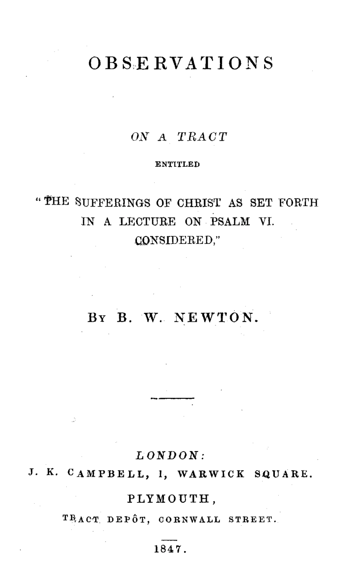 Observations on a Tract Entitled "The Sufferings of Christ as Set Forth in a Lecture on Psalm VI Considered"