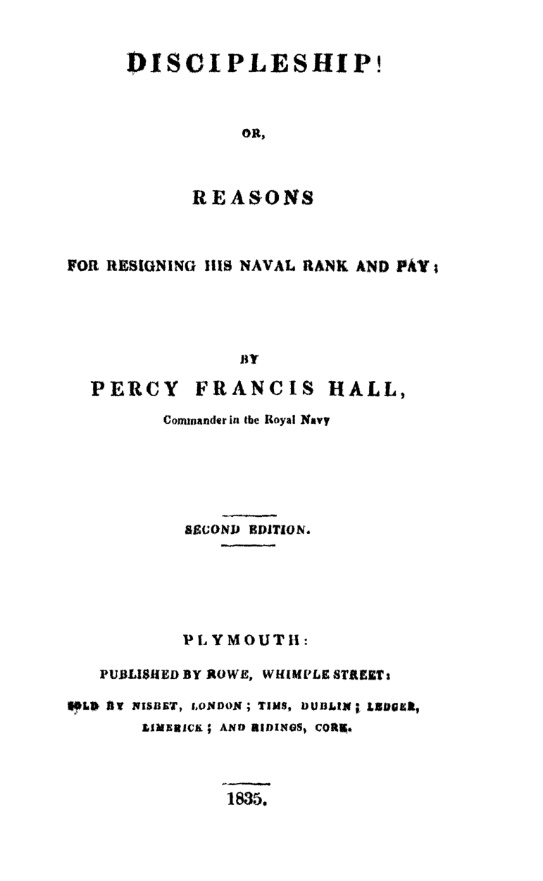 Discipleship! Or, Reasons for Resigning His Naval Rank and Pay
