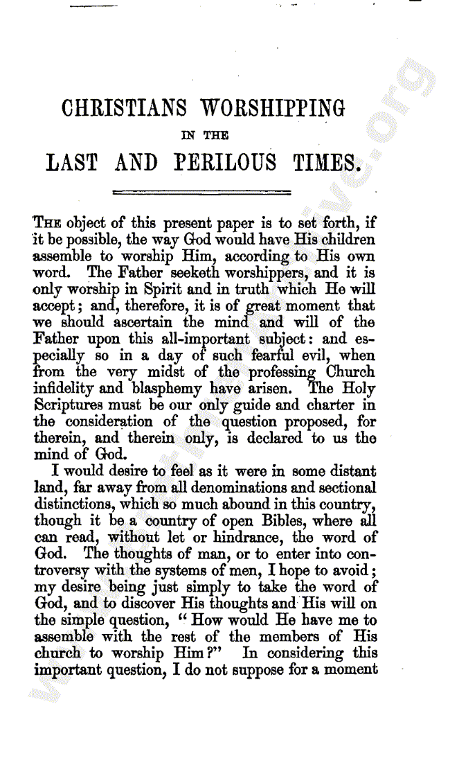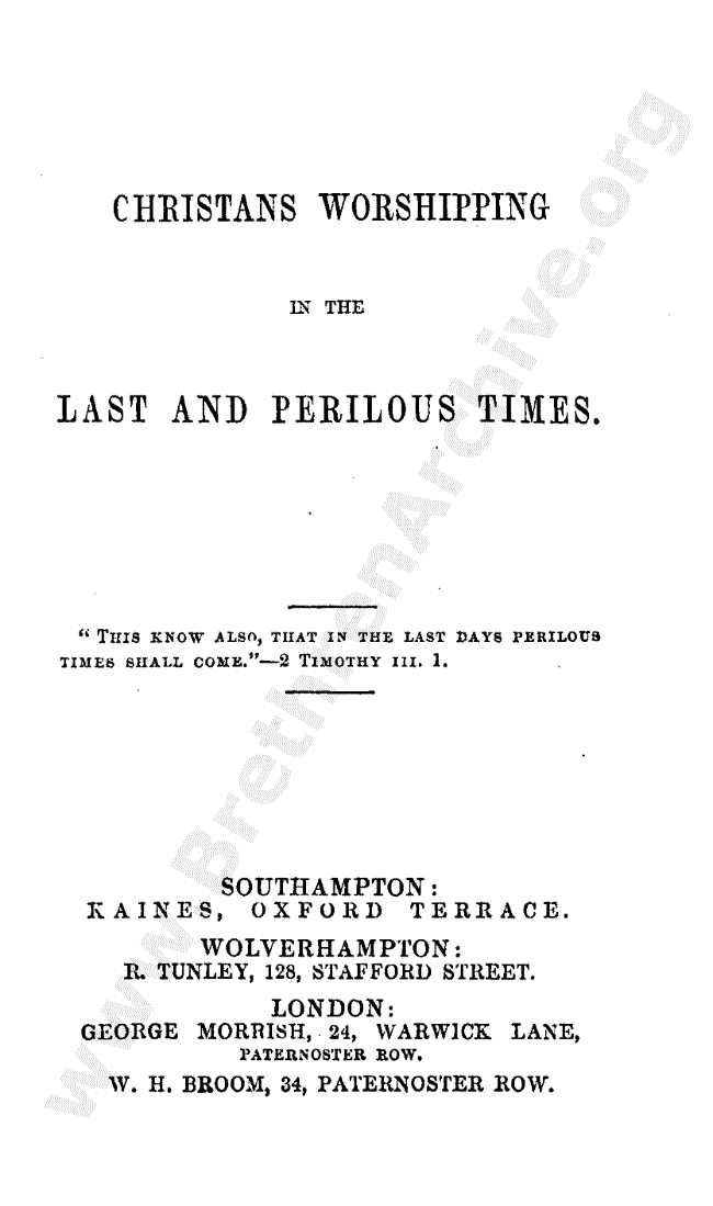 Christian Worshipping in the Last Perilous Times