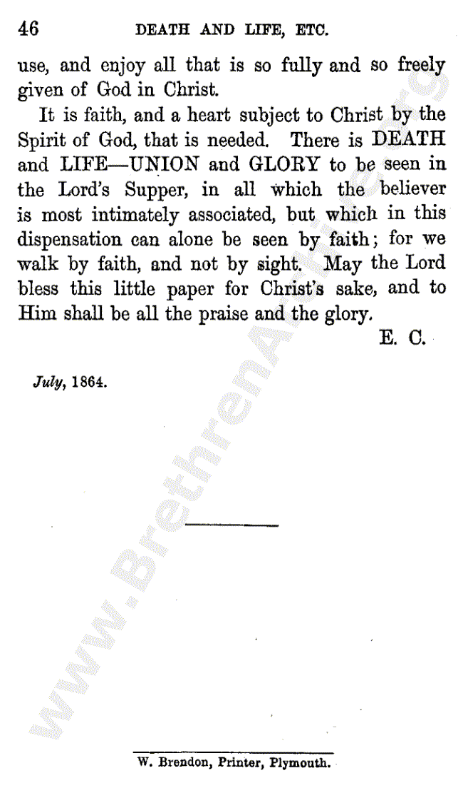 Death and Life - Union and Glory, or Truths Connected with the Lord's Supper