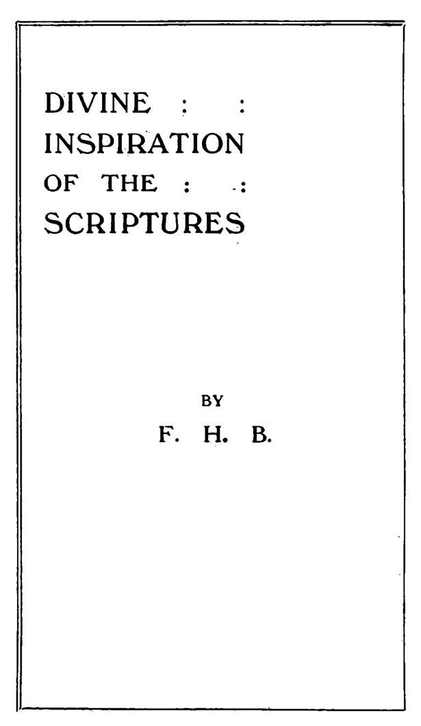 Divine Inspiration Of the Scriptures