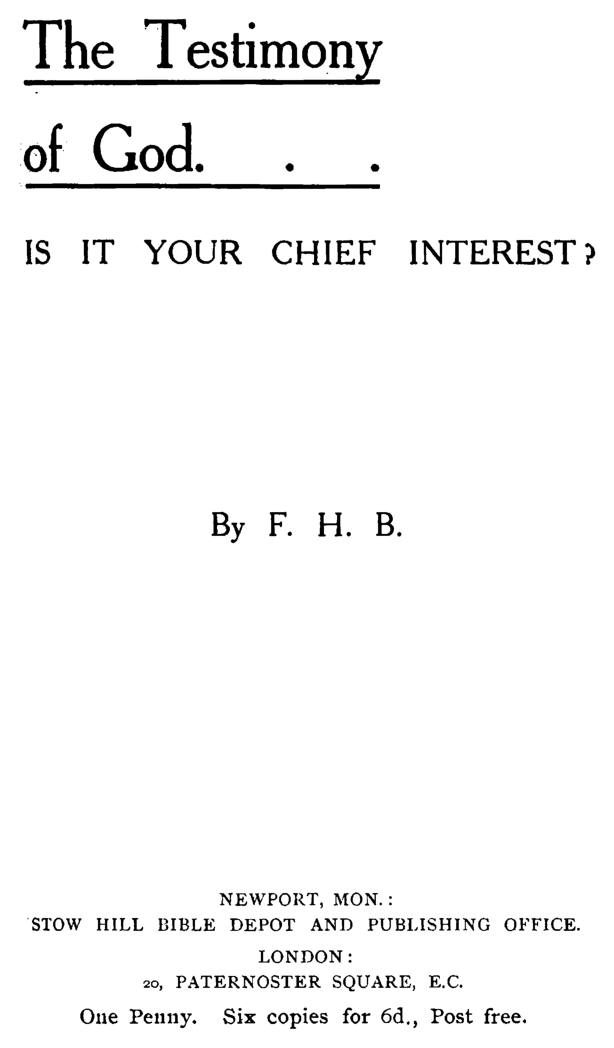 The Testimony of God ... is it Your Chief Interest?