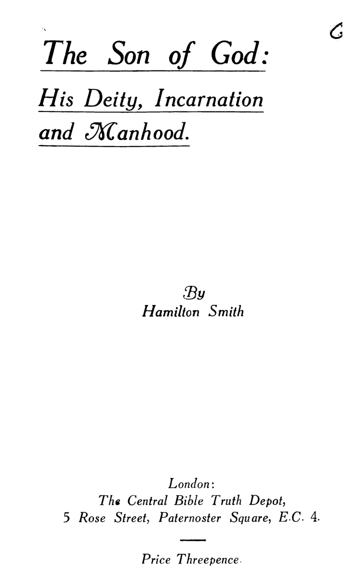 The Son of God: His Deity, Incarnation, and Manhood