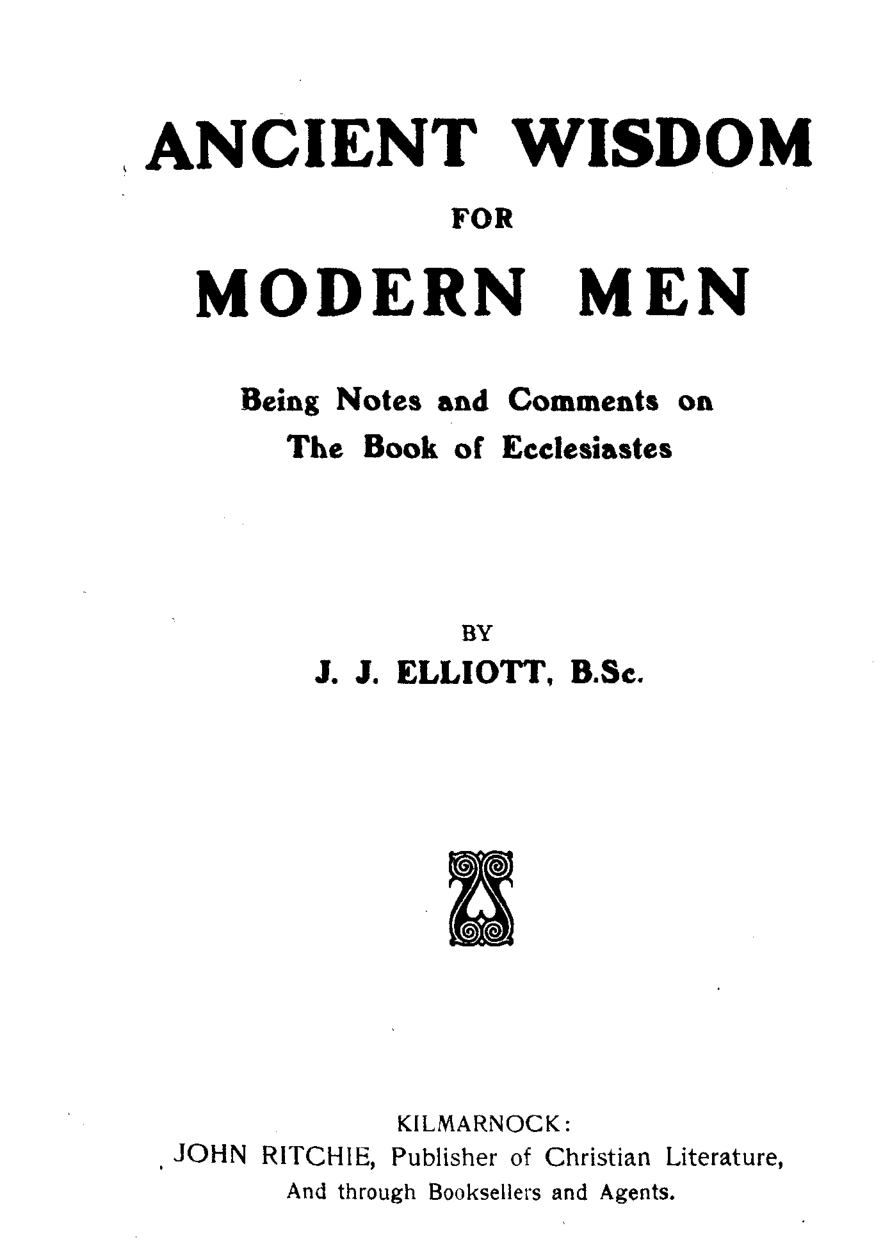 Ancient Wisdom for Modern Men - Being Notes and Comments on the Book of Ecclesiastes