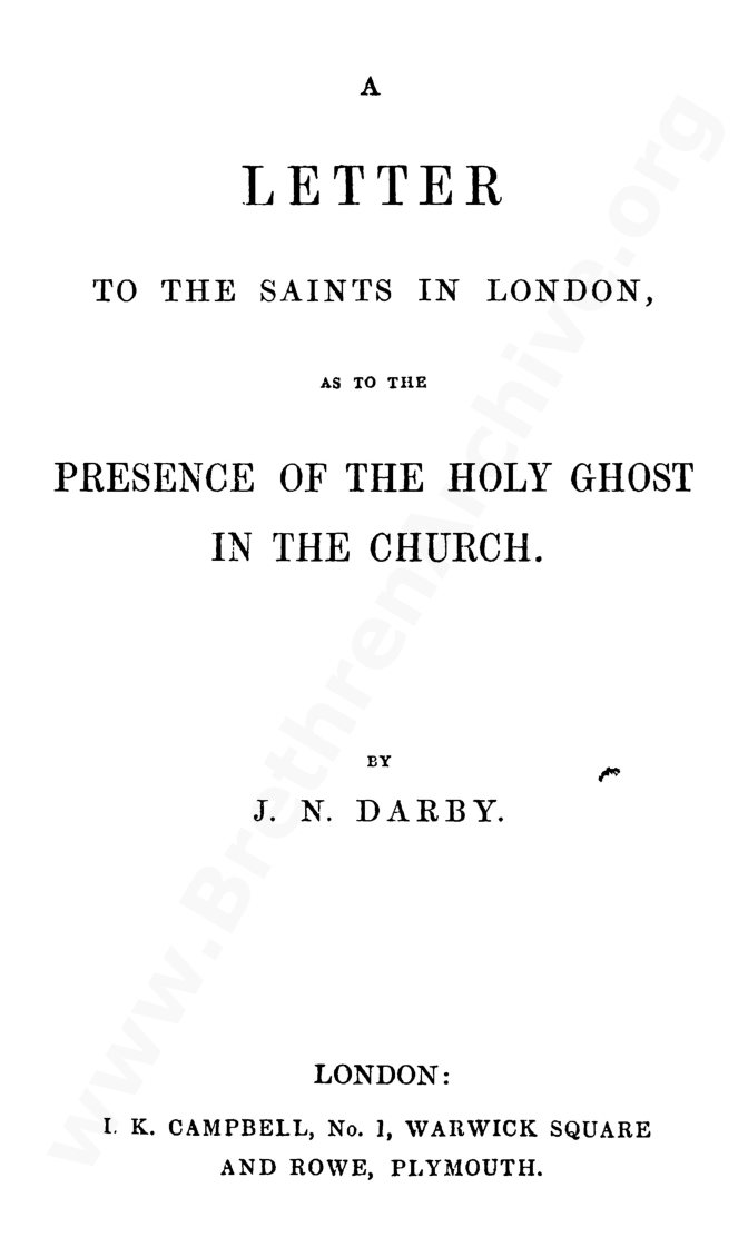 A Letter to the Saints in London as to the Presence of the Holy Ghost in the Church
