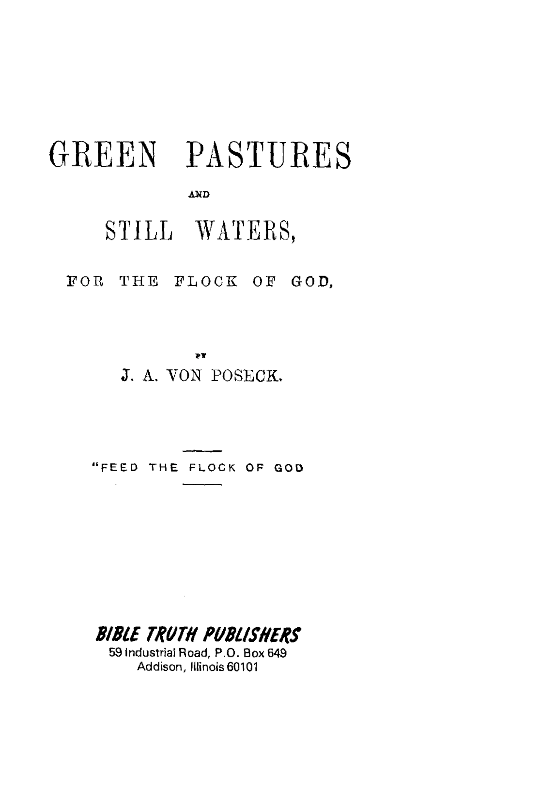 Green Pastures and Still Waters for the Flock of God (BTP Facsimile 1982)