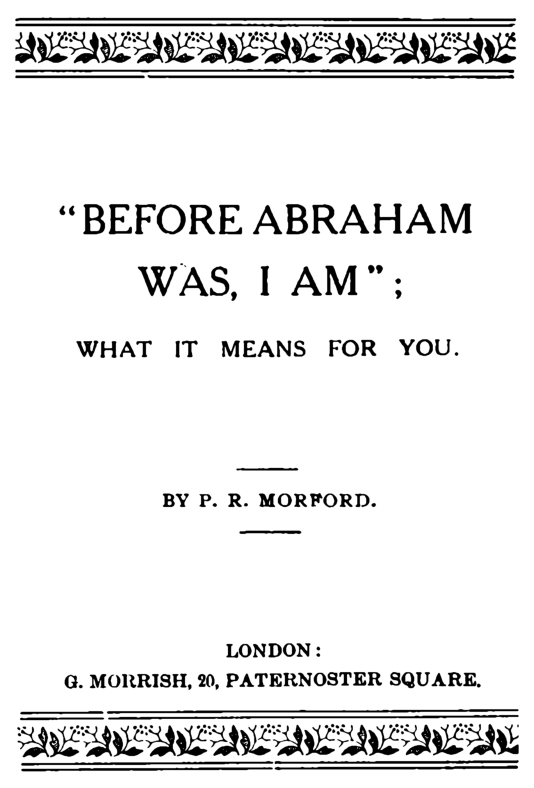 "Before Abraham Was, I Am"; What it Means for You