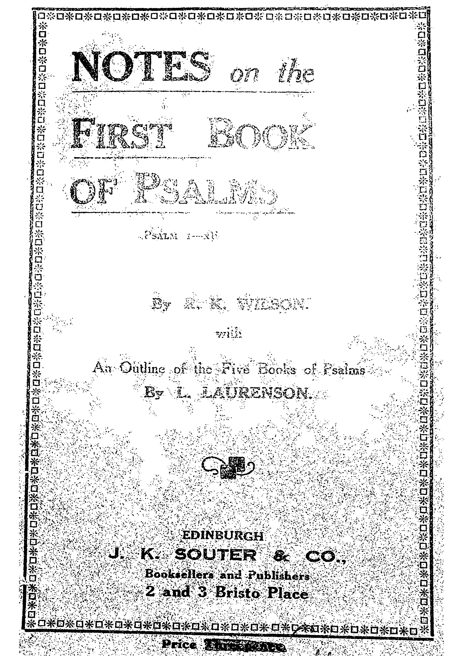 Notes on the First Book of Psalms with An Outline of the Five Books of Psalms