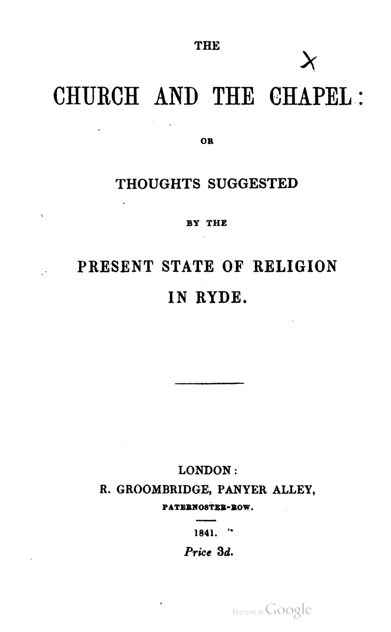 The Church and the Chapel: Or Thoughts Suggested by the Present State of Religion in Ryde