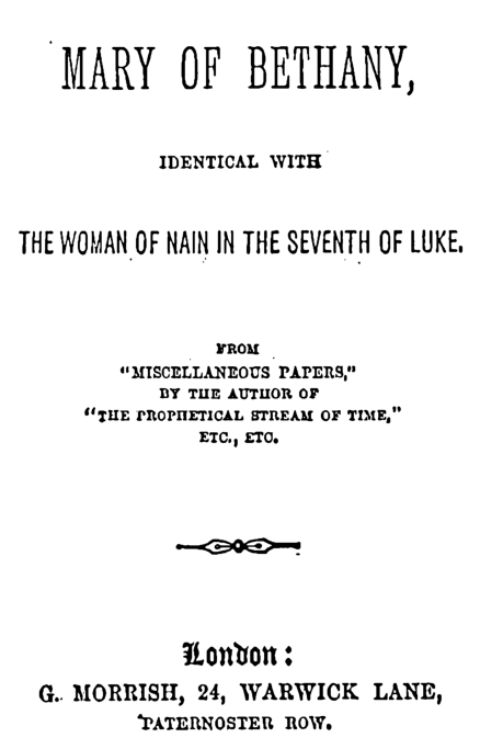 Mary of Bethany, Identical With the Woman of Nain in the Seventh of Luke