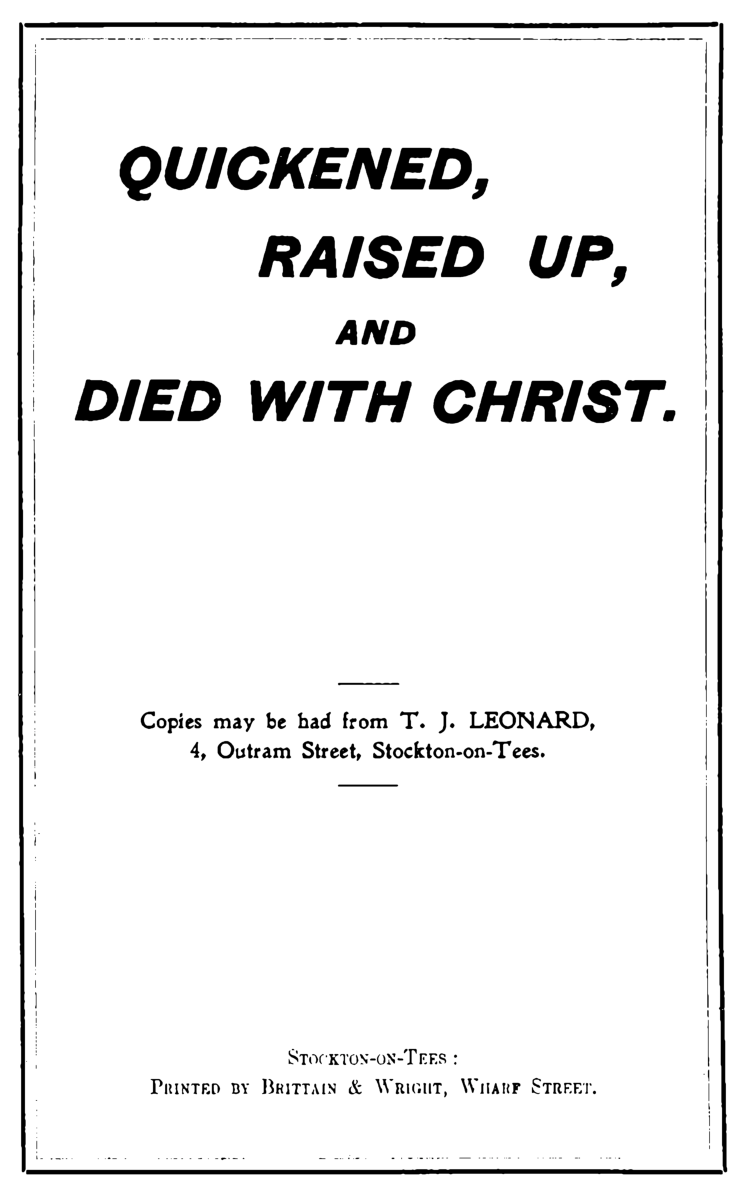 Quickened, Raised Up, and Died With Christ
