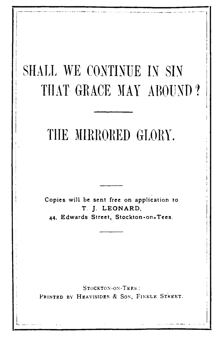 Shall we Continue in Sin That Grace May Abound? And, The Mirrored Glory