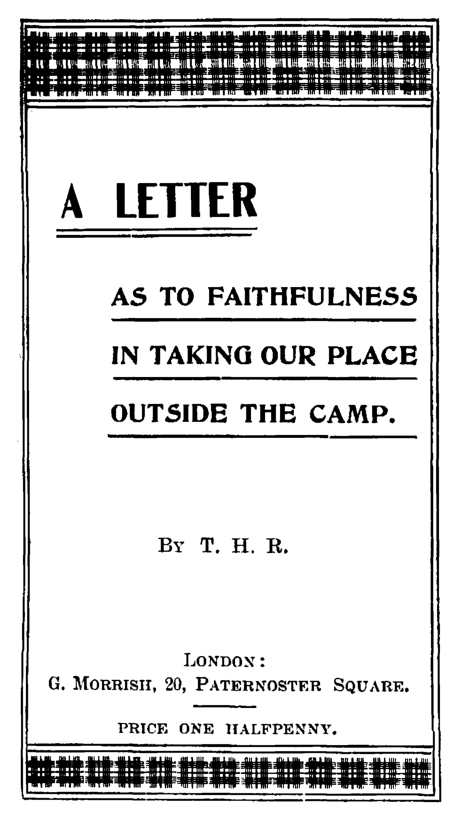A Letter as to Faithfulness in Taking Our Place Outside the Camp