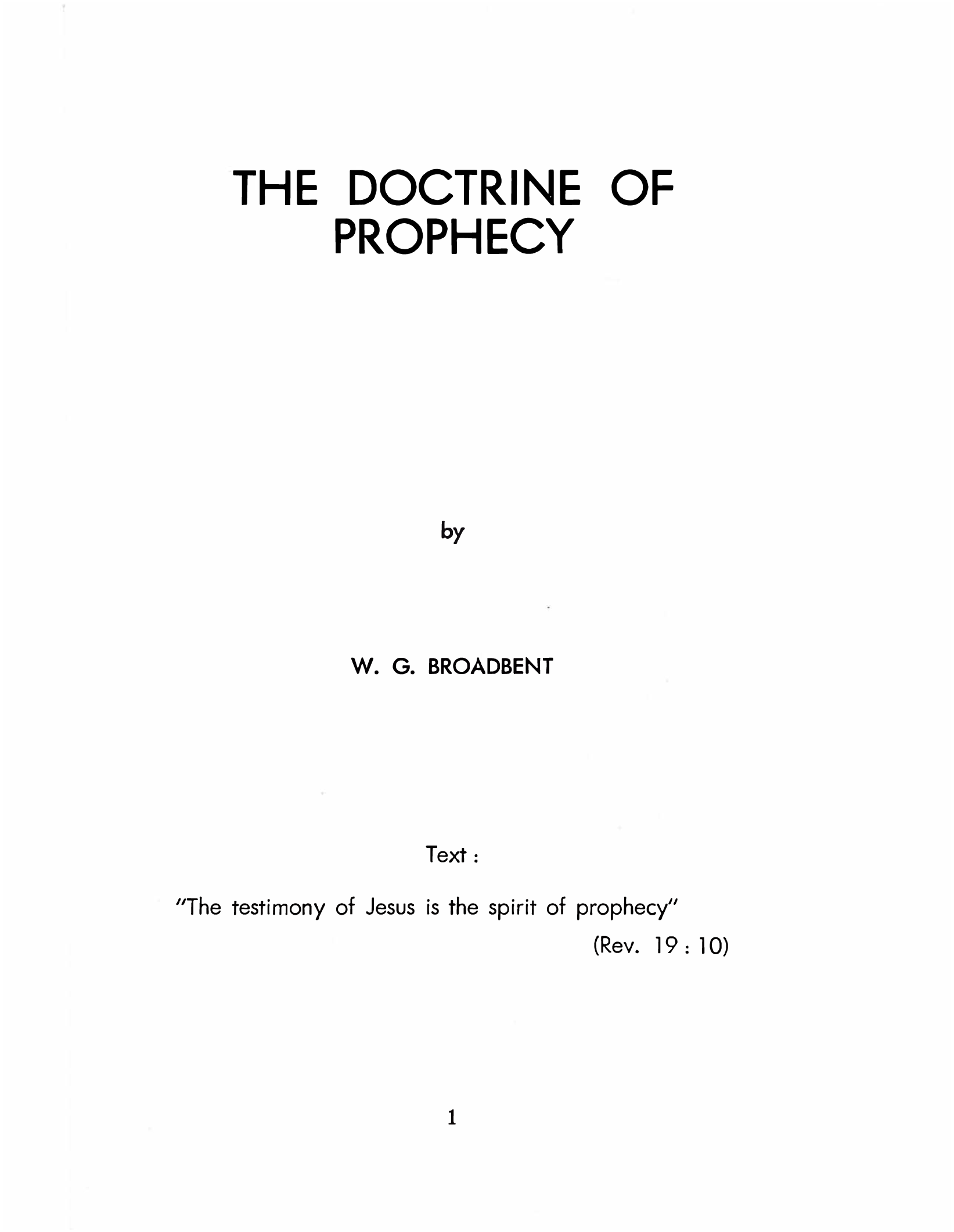 The Doctrine of Prophecy