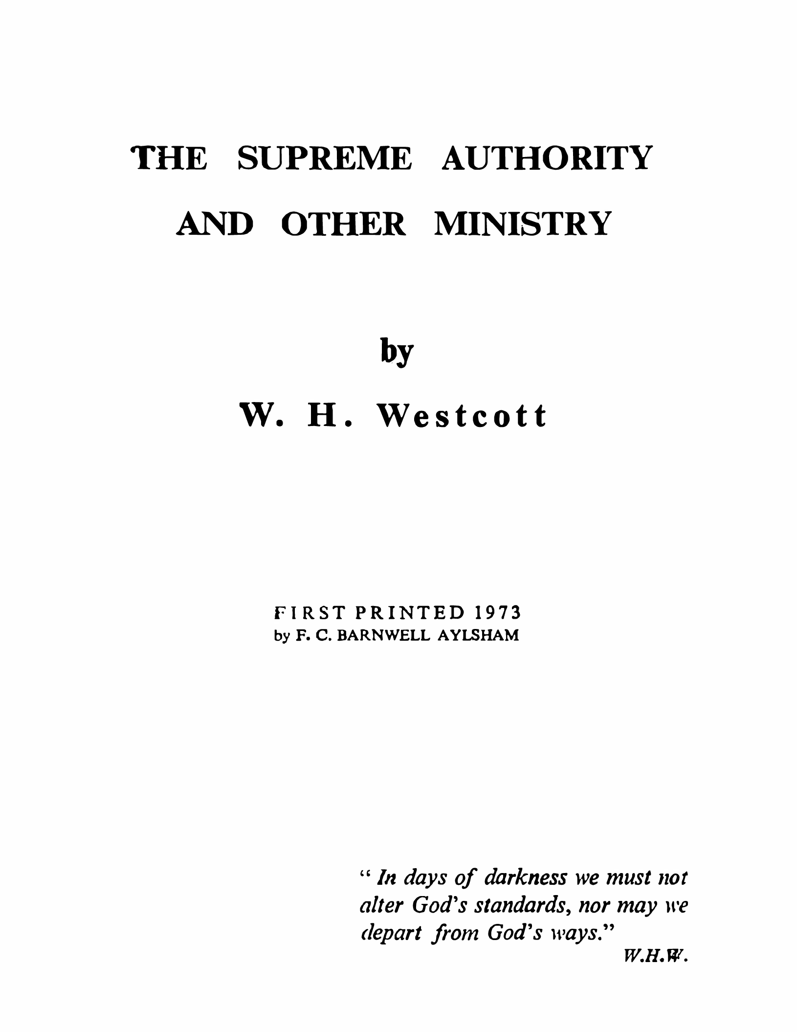 The Supreme Authority and Other Ministry