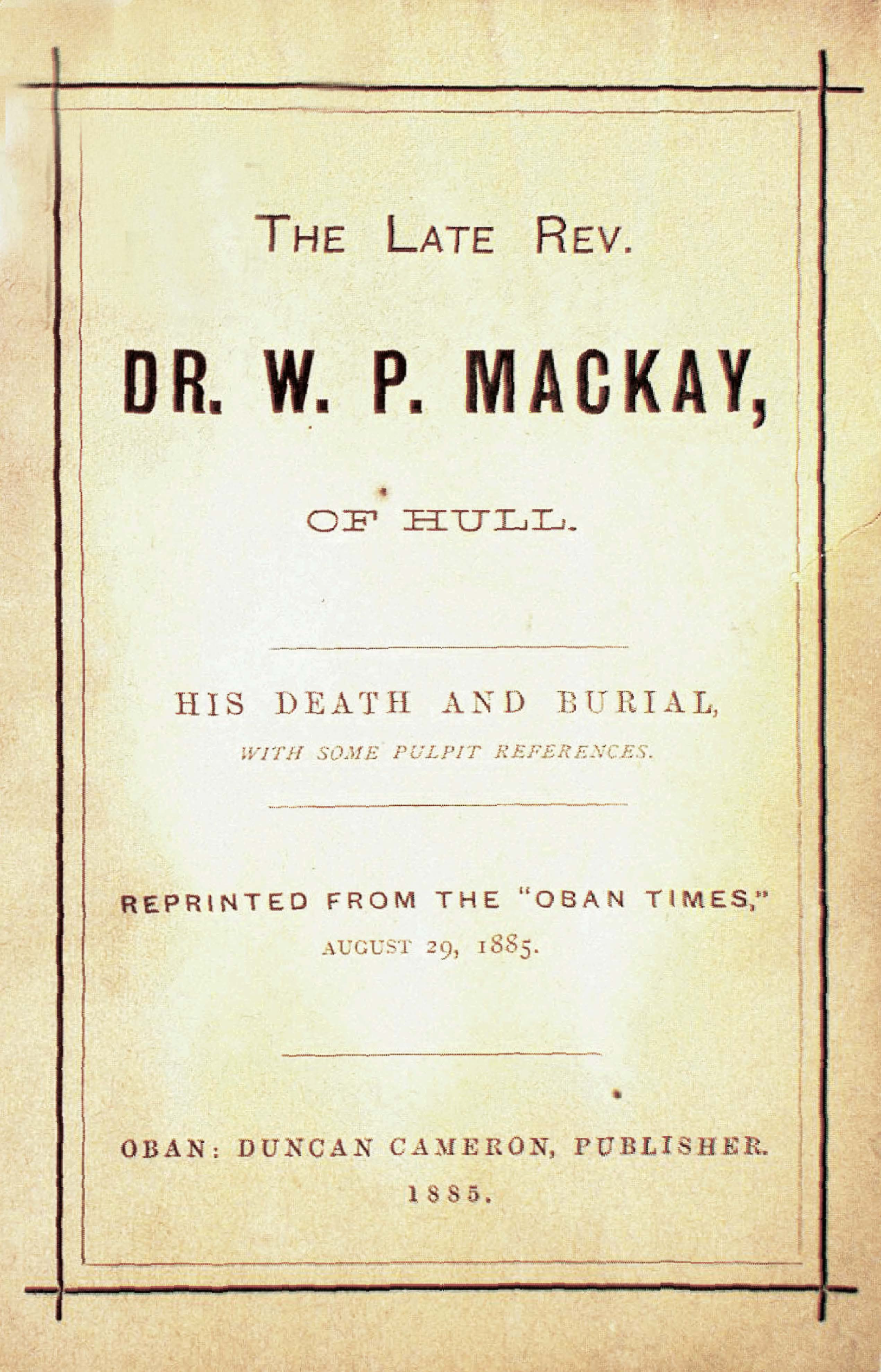 The Late Rev. Dr. W. P. Mackay, of Hull. His Death and Burial, With Some Pulpit References.