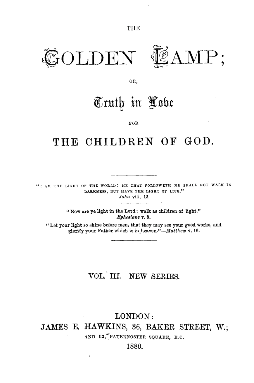 The Golden Lamp: Or Truth in Love for the Children of God
