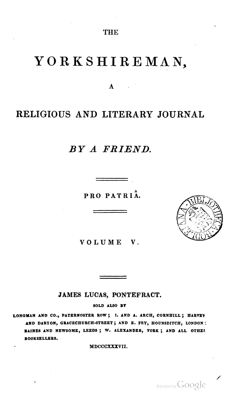 The Yorkshireman, a Religious and Literary Journal, by a Friend