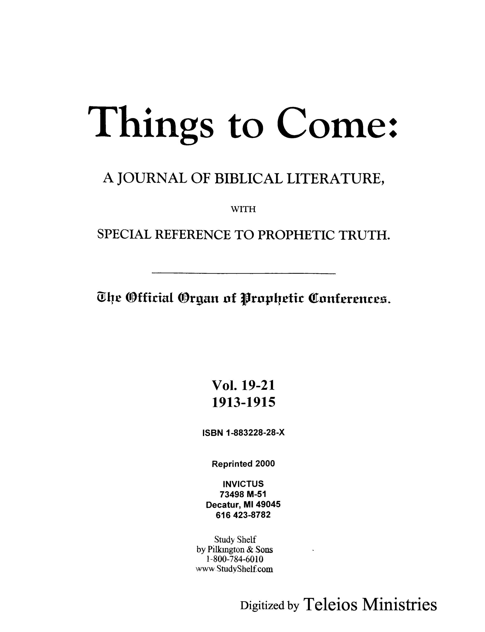 Things to Come: a Journal of Biblical literature, with special reference to prophetic truth and "that blessed hope"